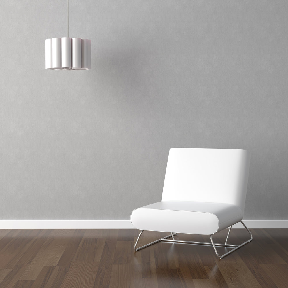 white chair and lamp on grey